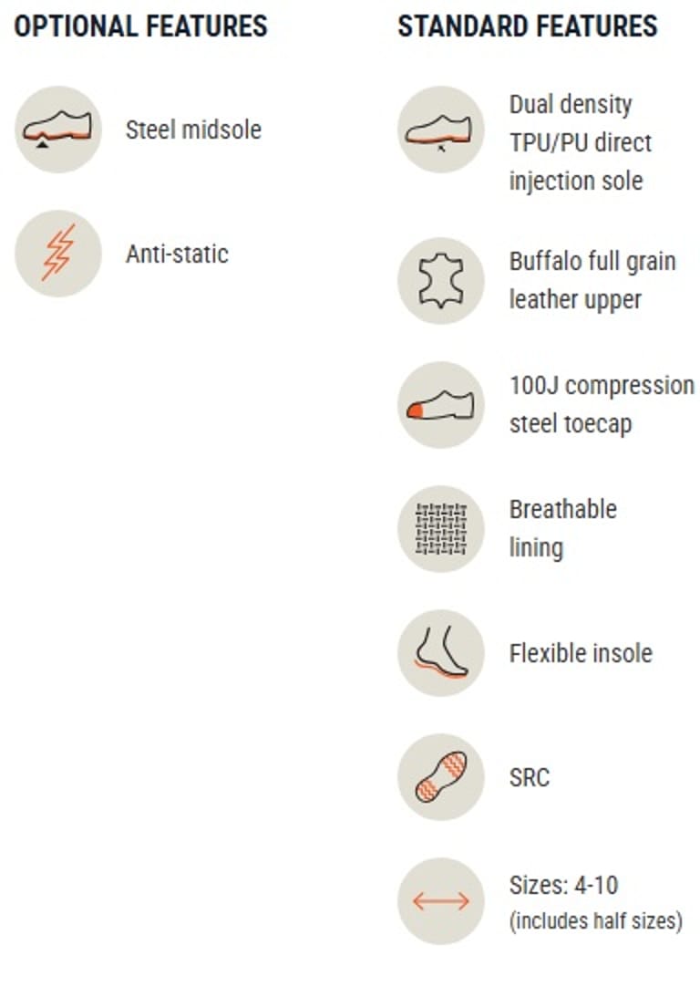 The Hope lace-up safety shoes for women give the wearer great underfoot support that diffuses shock, keeping the feet stable and safe on the ground and reducing impact to your feet and body.